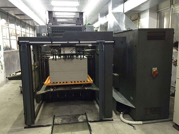 本公司開(kāi)發(fā)生產(chǎn)了一種印刷機(jī)預(yù)裝紙裝置,適用于國(guó)內(nèi)外各品牌印刷機(jī),用于印刷機(jī)進(jìn)紙的可垂直升降的進(jìn)紙托盤(pán),其特征在于: 在印刷機(jī)進(jìn)紙托盤(pán)上安裝導(dǎo)軌,進(jìn)紙托盤(pán)上導(dǎo)軌與地面安裝的導(dǎo)軌對(duì)接,所述導(dǎo)軌和所述進(jìn)紙托盤(pán)之間還設(shè)置一個(gè)垂直于所述進(jìn)紙托盤(pán)的縱長(zhǎng)的定位尺。新型的印刷機(jī)預(yù)裝紙裝置通過(guò)導(dǎo)軌可以精確定位小平板車(chē),再通過(guò)定位尺對(duì)其上的紙張進(jìn)行定位,從而快速準(zhǔn)確地對(duì)小平板車(chē)上的紙張進(jìn)行定位作業(yè)。本實(shí)用新型的印刷機(jī)預(yù)裝紙置具有結(jié)構(gòu)簡(jiǎn)單,高效,定位準(zhǔn)確等優(yōu)點(diǎn)。